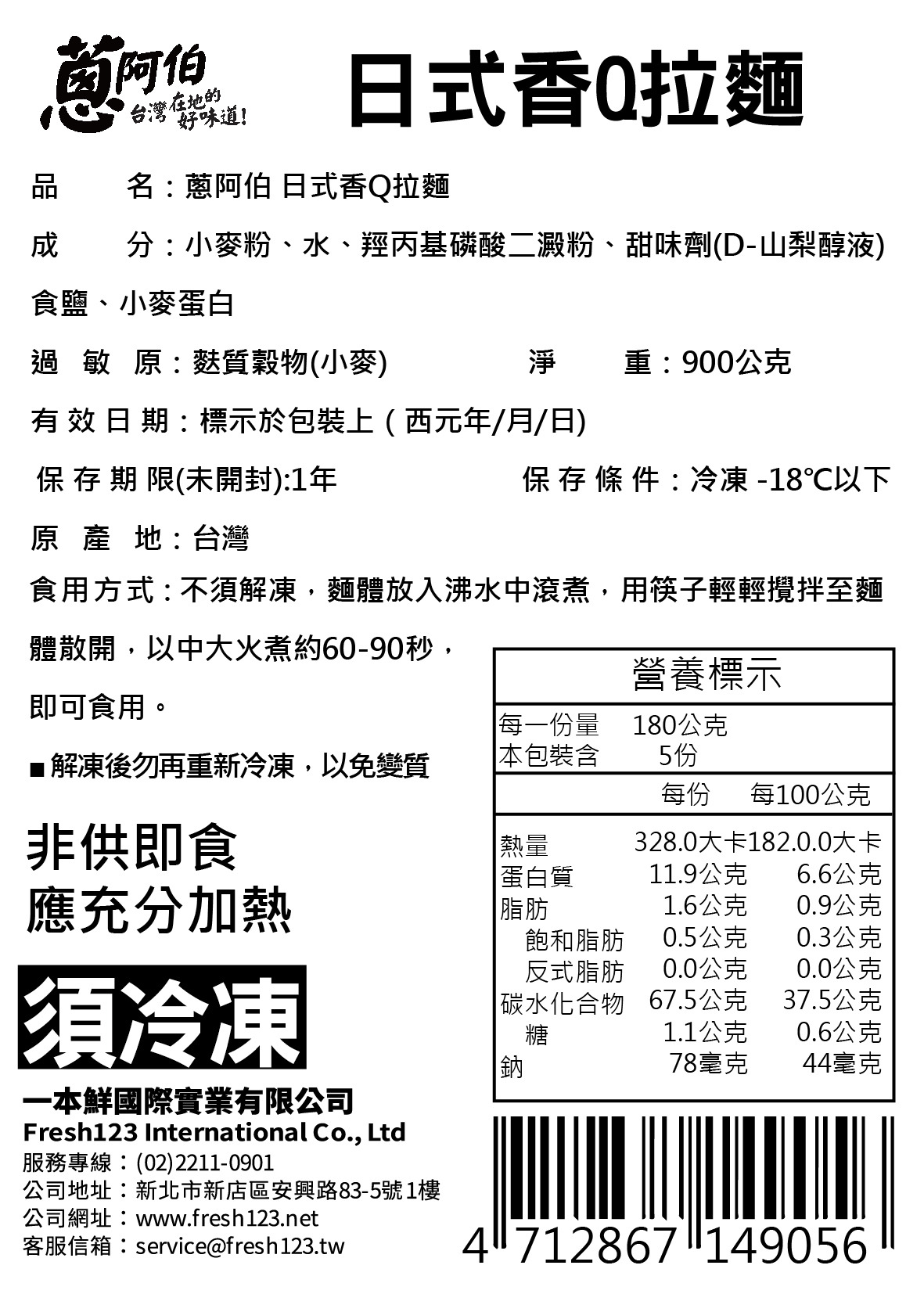 【蔥阿伯】日式香Q拉麵 900g( 5片 )