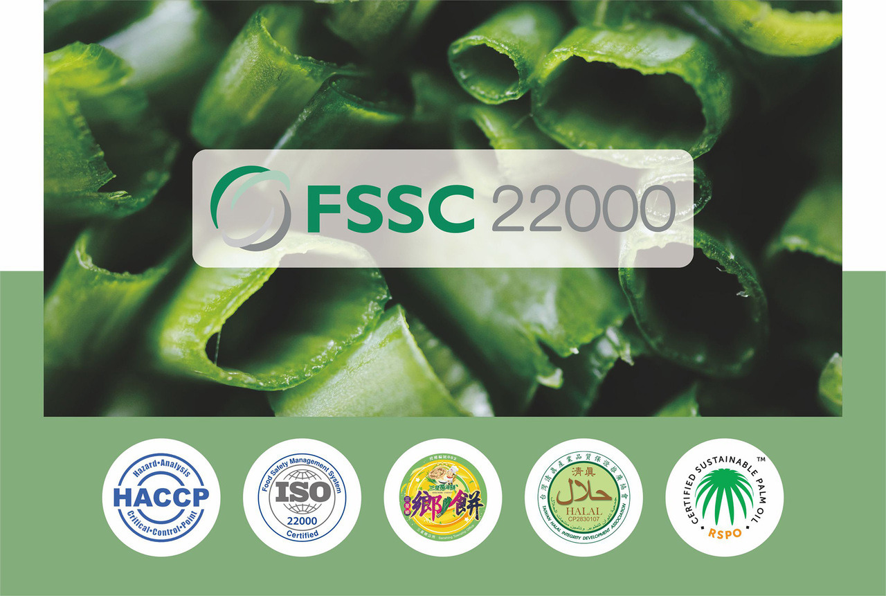 秉持堅持高品質、研發精緻農產冷凍食品加工,打造100%MIT台灣製造、行銷台灣美食,工廠端除基本HACCP、ISO22000外也與世界食品同步努力,獲得全球食品倡議協定GFSI法國FSSC認證、Halal清真認證、棕櫚油永續發展(RSPO)認證、執行「全球企業社會責任CSR」國際通用驗證標準已執行認證。