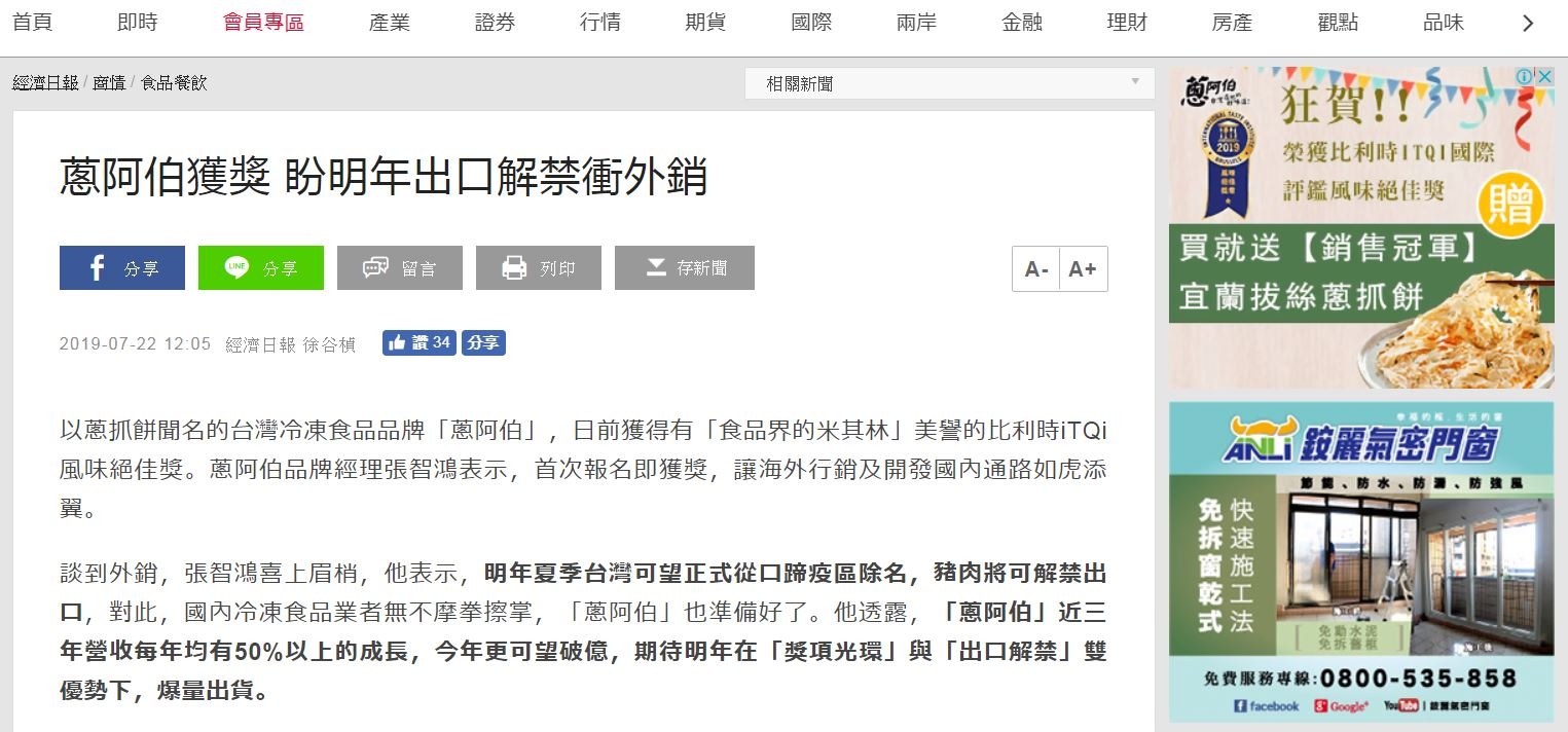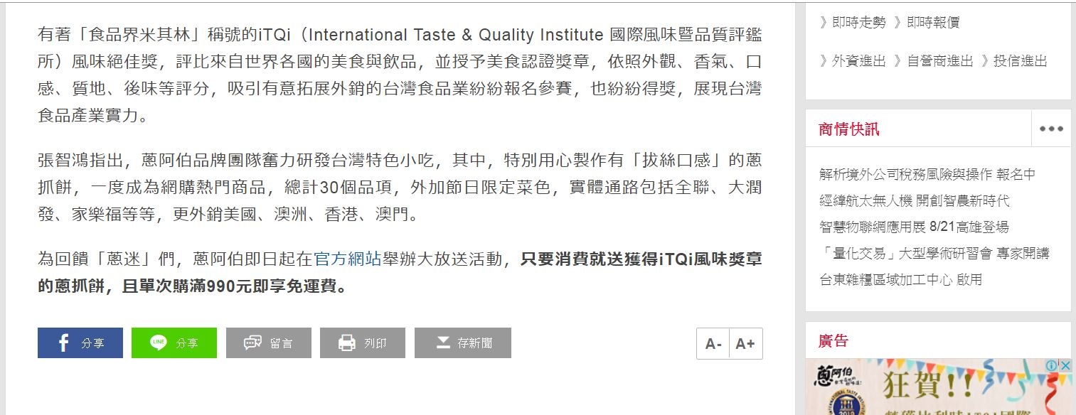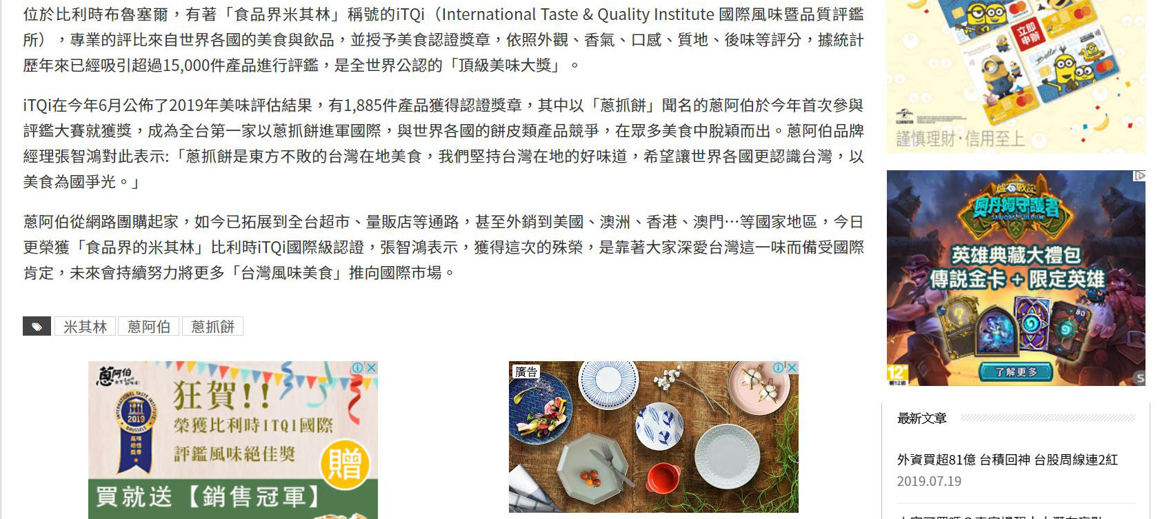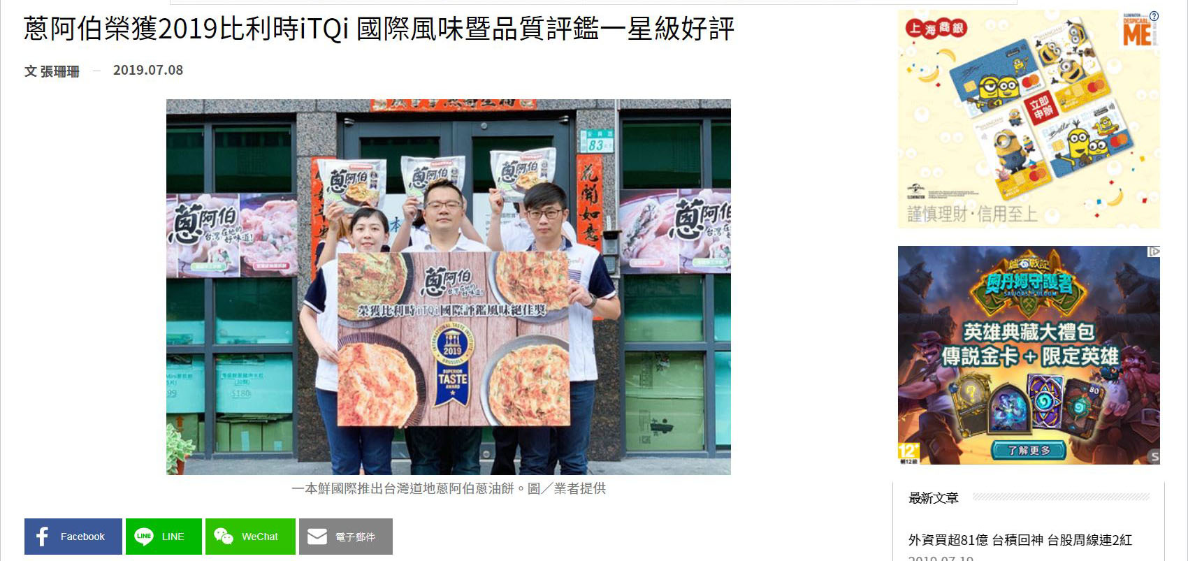 蔥阿伯榮獲ITQI比利時風味絕佳獎