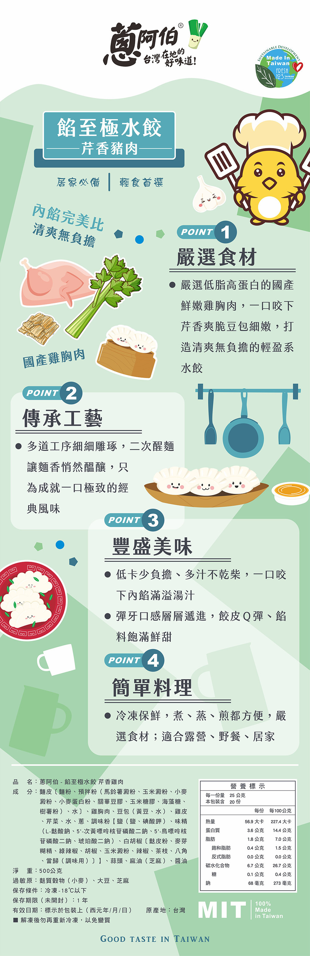 【蔥阿伯】餡至極水餃 芹香雞肉 500g(約20粒)