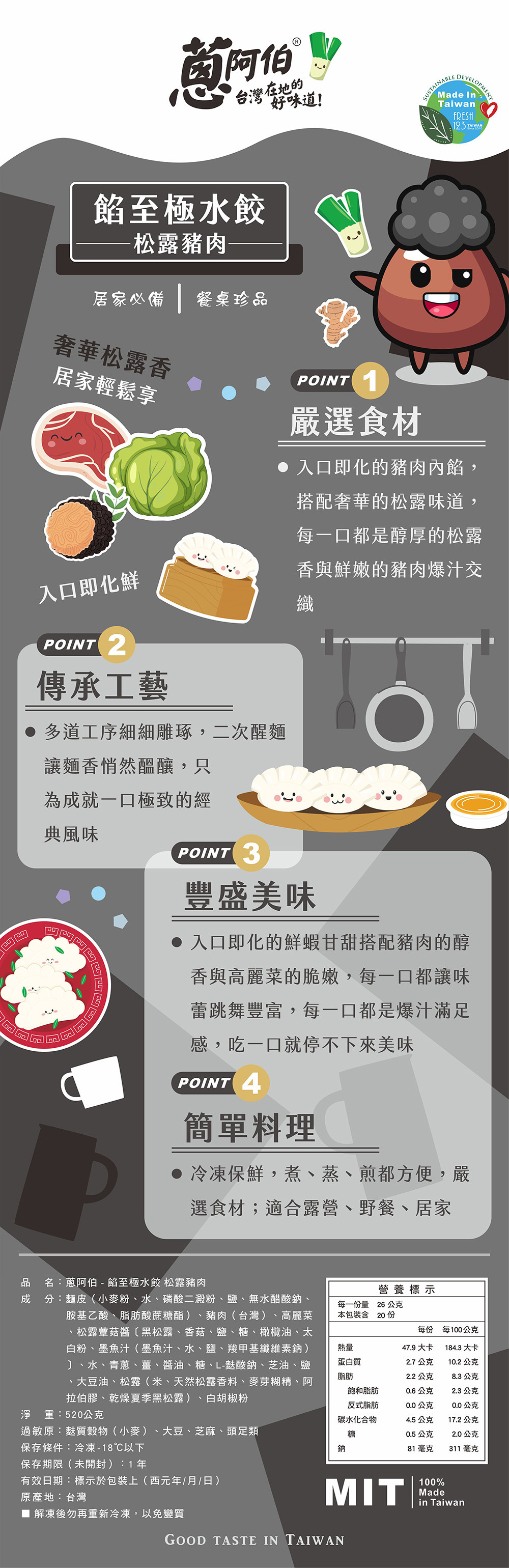 【蔥阿伯】餡至極水餃 松露豬肉 520g(約20粒)