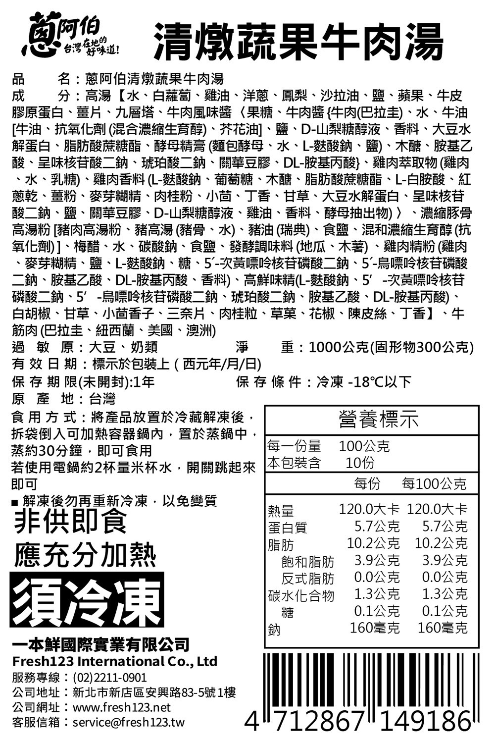 【蔥阿伯】清燉蔬果牛肉湯 1000g(固形物300g)