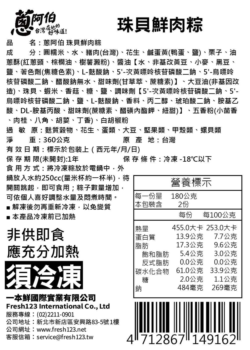 【粽夏好味.品端午】珠貝鮮肉粽 360g(2入 )